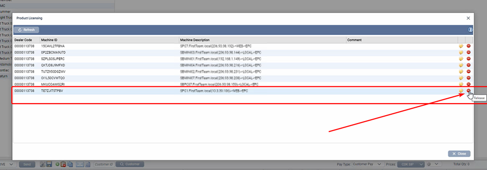 Click the red minus icon on the right. When you hover over it, a tooltip will confirm it releases the license.
