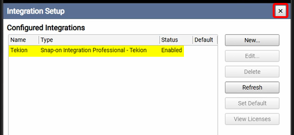 You should now see your newly configured Integration configuration. Close the Integration Setup Window.